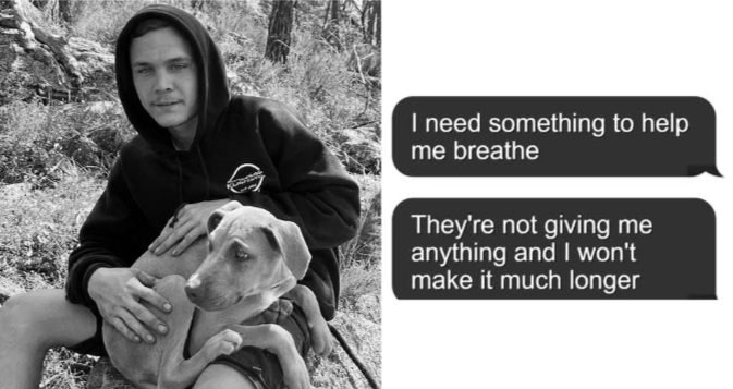 During that time, he struggled to breathe and asked for help multiple times, even texting his dad “They're not giving me anything and I won't make it much longer”, a message that now hits hard reading it back.