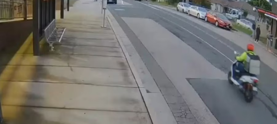 CCTV footage shown in court depicting the alleged attacker arriving on a white scooter dressed as an Uber Eats delivery driver.